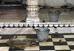 A la salida unos niños bromean con las mujeres extranjeras que no se han atrevido a entrar. Les hacen gestos de que las kabas, las pequeñas ratas peludas y grises, les están trepando por las perneras de los pantalones y las mujeres ríen un poco espantadas mientras se palpan. Las jóvenes indias de los alrededores reprenden con dulzura a los muchachos.