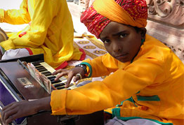 Antes de que rompa la mañana hay un hindú tocando un viejo instrumento rajastaní en la puerta del palacio de Lalgarth de Bikaner. Aún no ha abierto el museo con el que compartimos pasillo y no ha llegado el viejo guardia de seguridad armado de un largo bastón de bambú con alma de acero, que nos saluda con gestos antes de bajar a desayunar. Pregunto el nombre del instrumento y el camarero me dice que se trata de un bhapang, un instrumento de cuerda que suele utilizarse para tocar baladas épico religiosas y sobre todo, devocionales.